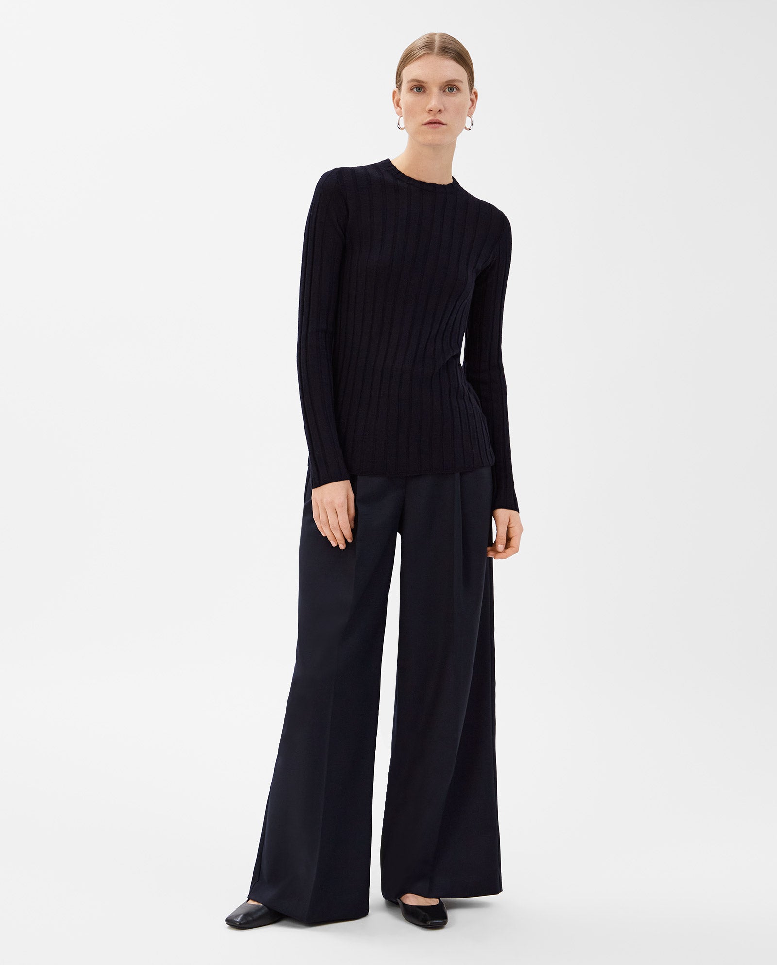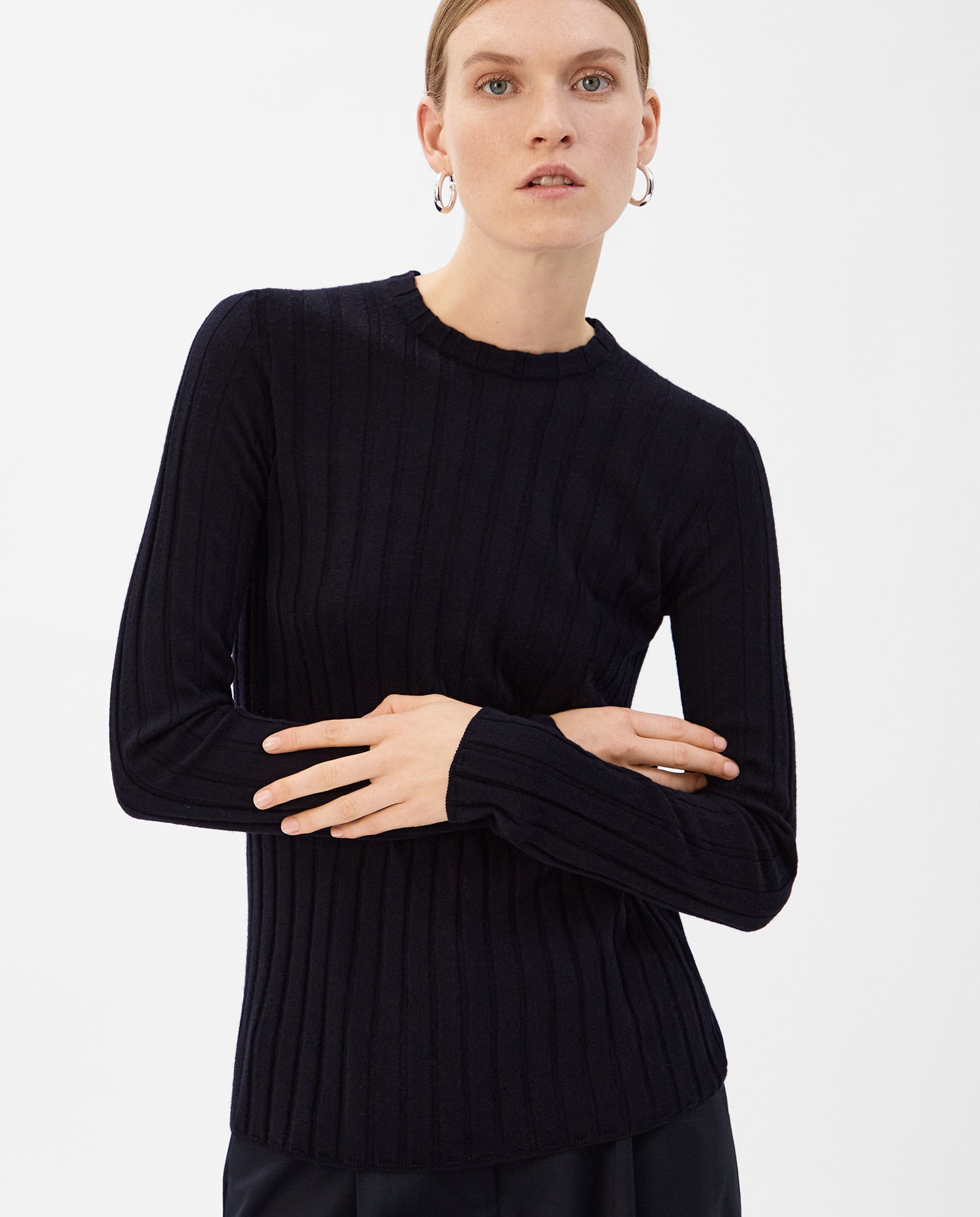The KACY ANN pullover is made of soft Merino rib, it has a precise fit, and is ideal for the transitional season.