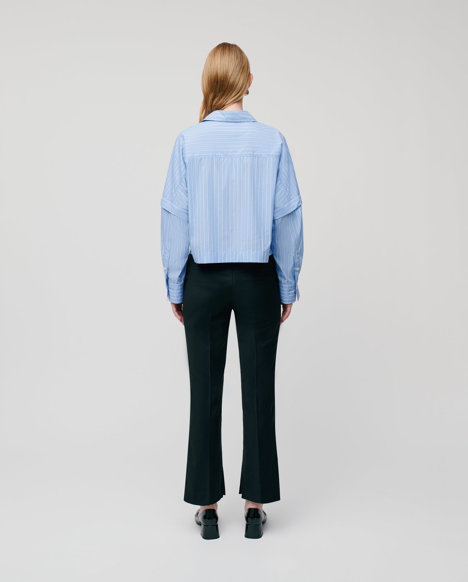 The POLINA trousers are fitted and flared with slit detail at inner leg hem. Paired with our JOLANKA blazer, they create a distinctive look.