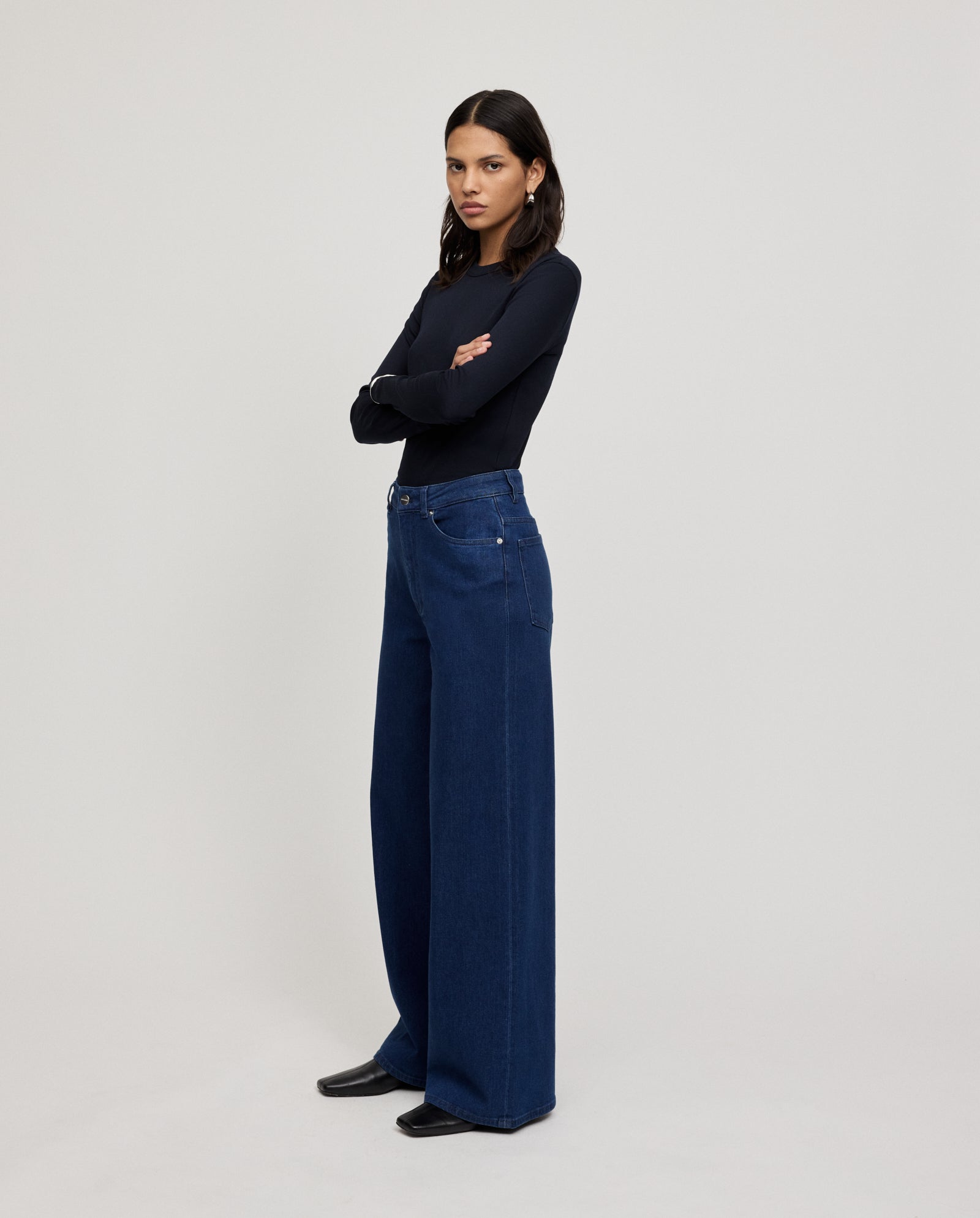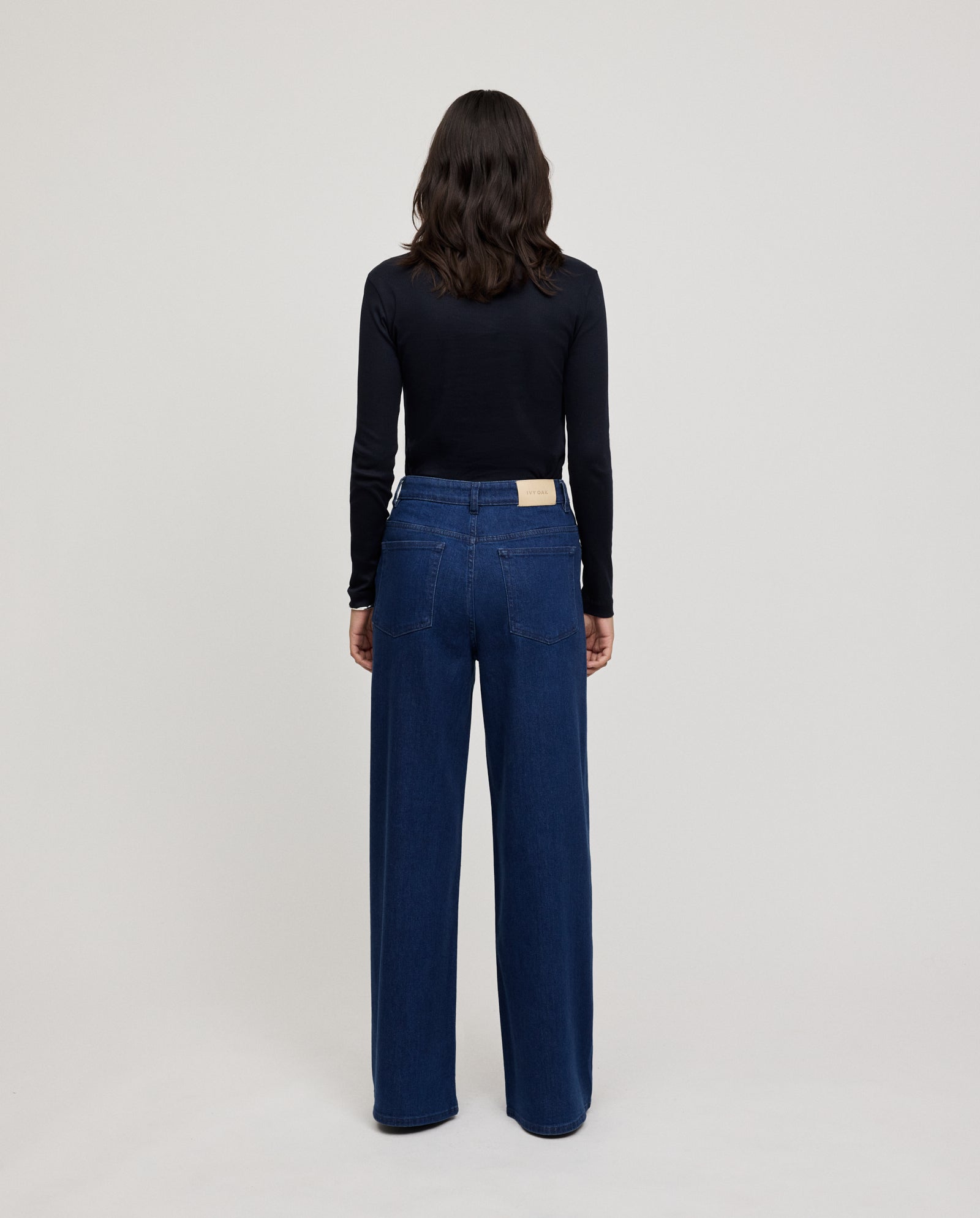PRIJANKA - high-waisted denim jeans. These trousers can be worn in combination with a classic boxy T-shirt or with our matching BERENICE denim blouse. Due to the natural properties of denim, the trousers become slightly wider after wearing. For the indigo color variant, we recommend washing the garment before wearing (due to the natural properties of the indigo dye). We recommend washing your jeans as little as possible to preserve the original color and reduce the environmental impact.
