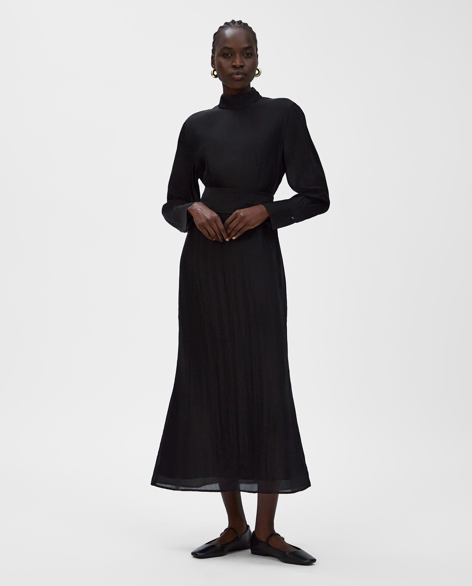 Crafted from elegant organza - our MALINA midi-length dress. To give it the perfect fit, it comes with an optional belt. It has a loose fit in top and flared look of skirt. The flowing, lightweight material makes it perfect for various occasions.