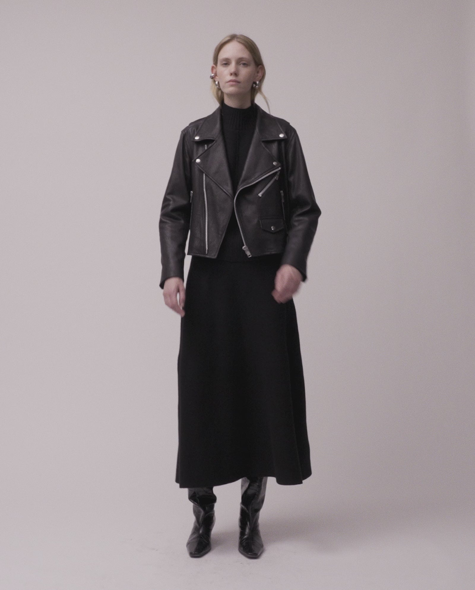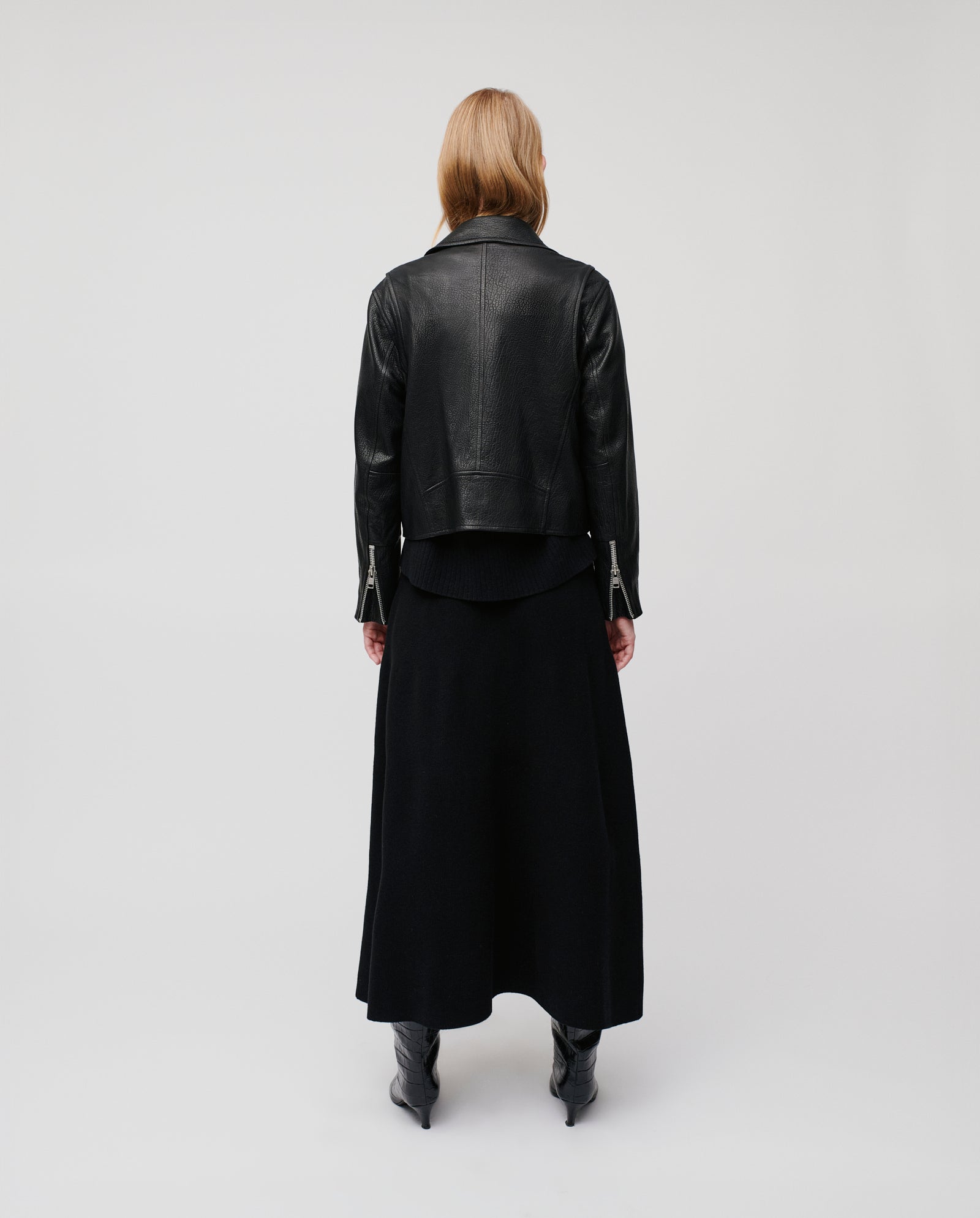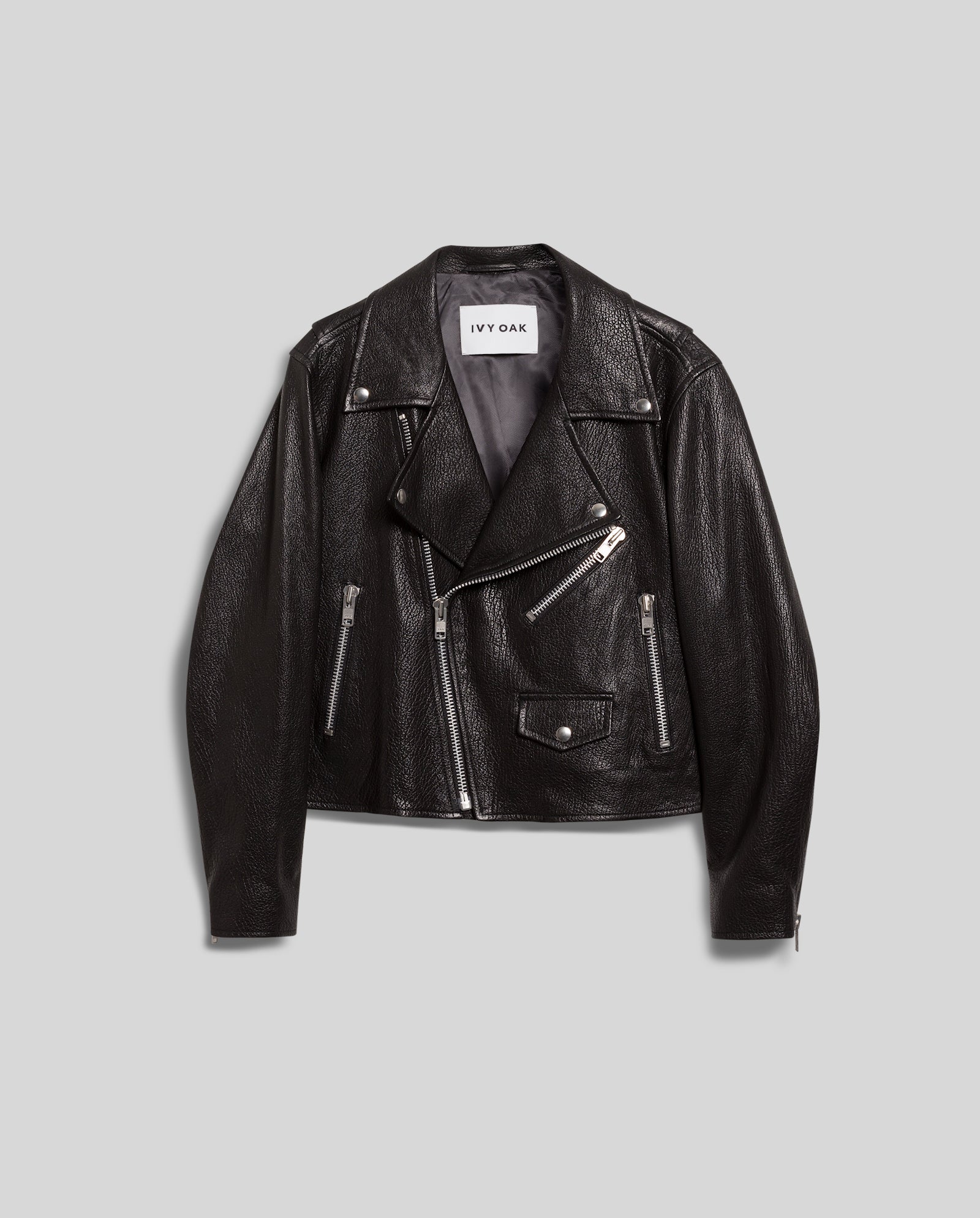 LENNY SUE biker jacket is made from chrome-free tanned leather. The jacket is soft and has a textured leather surface.