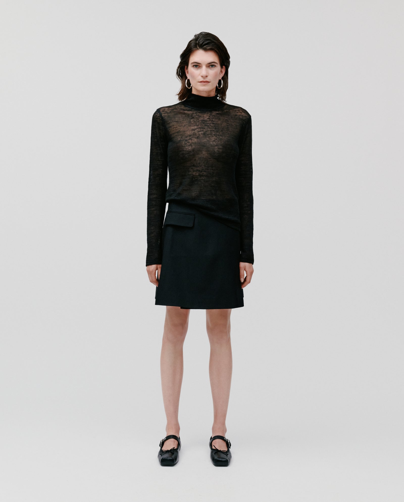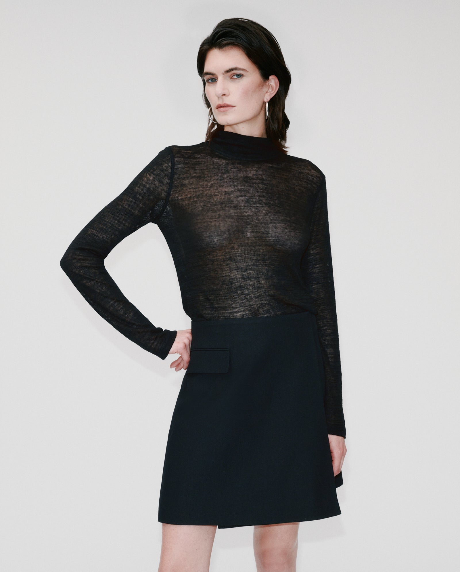 SUSANNA SkirtA woman stands against a plain background wearing the IVY OAK SUSANNA Skirt—a floor-length black skirt with graceful pleats and elegant long sleeves.
