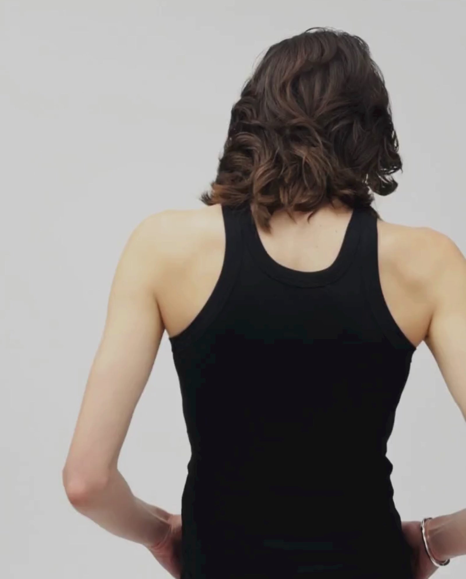 FINLEY is a tank top made of ribbed fine knit, with stretch and round neckline.