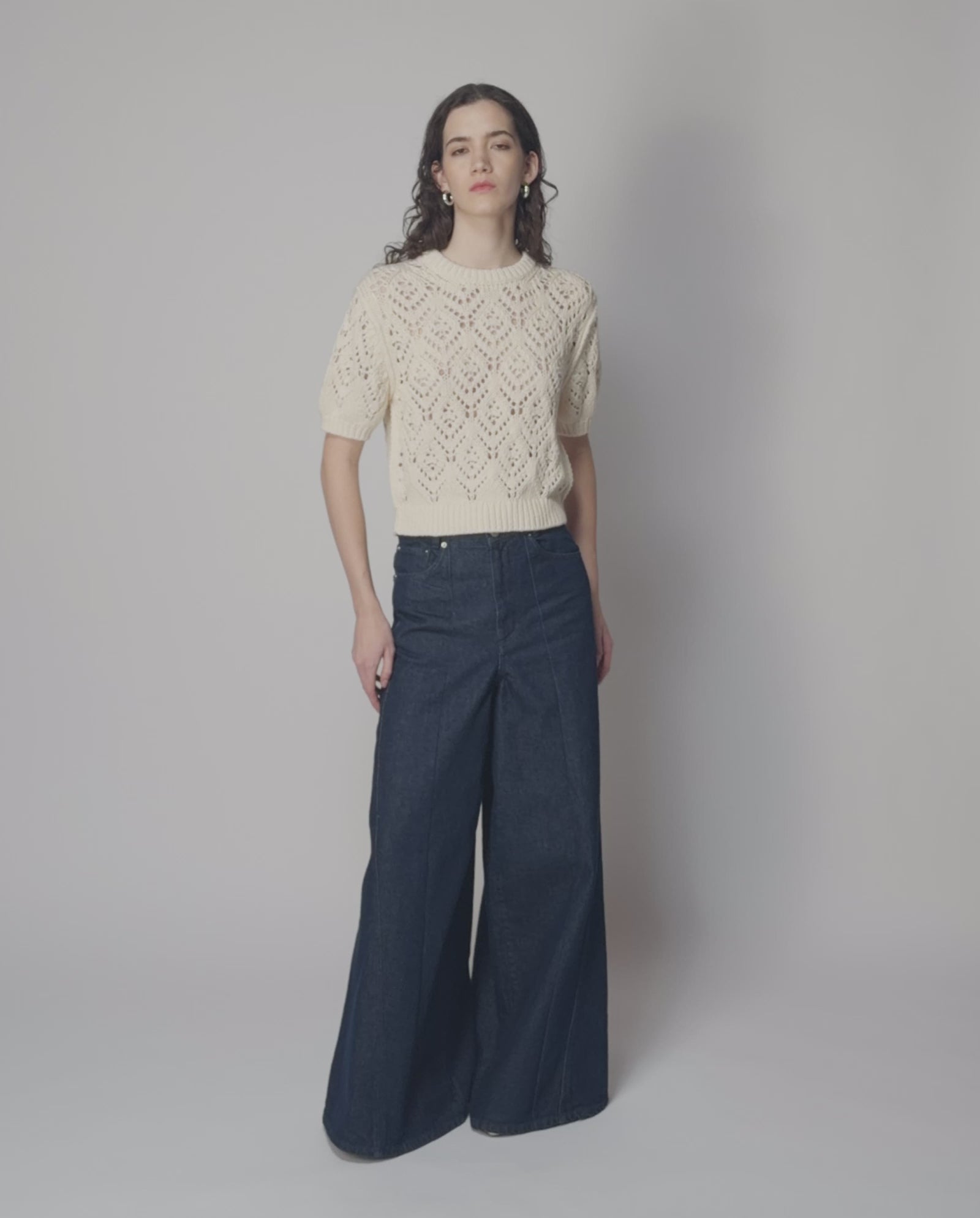 The FELIZknit has a open crochnet structure in a playful flower pattern and a loose t-shirt fit. This garment is crafted from premium natural fibers and features an open knit structure. As with all knits with natural origin, it may naturally relax and extend over time. To preserve its beautiful shape, we recommend storing it flat and folded rather than hanging. In order to recover its shape, we recommend to wash or steam it.